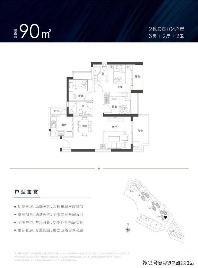 罕见三阳台户型设计,奢阔开间,超高使用率