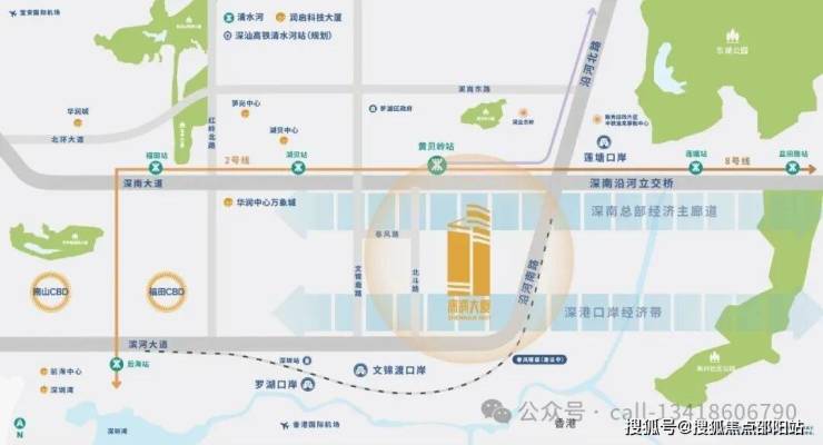 ①深南大道、滨河大道双主干道交汇,文锦路、春风隧道(建设中)便利通勤