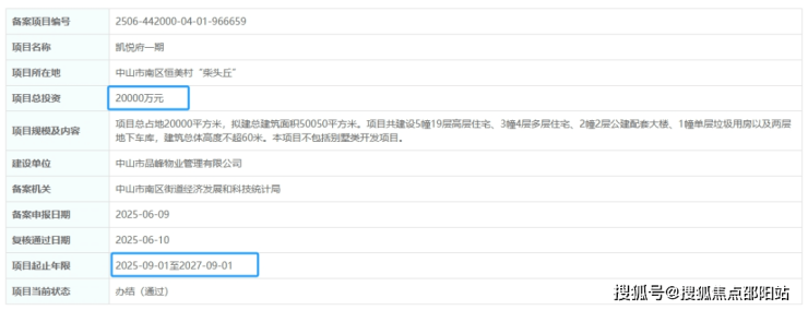 6月10日,广东省投资项目在线审批监管平台显示,项目凯悦府一期、二期正式备案。