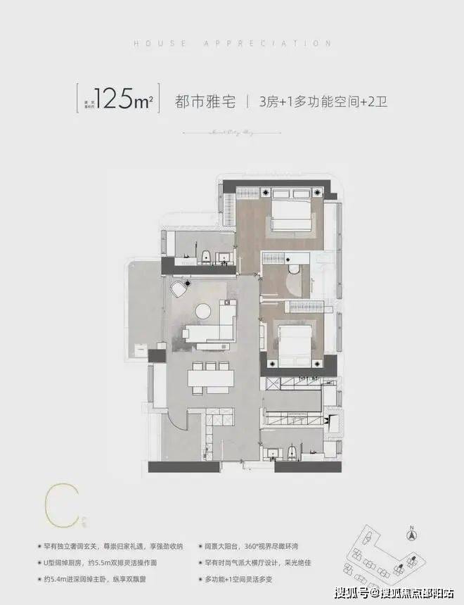 3️⃣C 户型(横厅户型),东西通透 124-125 平(01)看绿地公园及花园