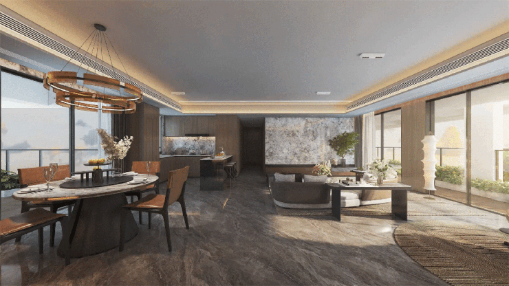 餐客厅阳台露台一体化,约78㎡奢阔社交空间,既能容纳大家庭的欢聚盛宴,也能承载孩子的奔跑嬉戏与父母的欢声笑语。