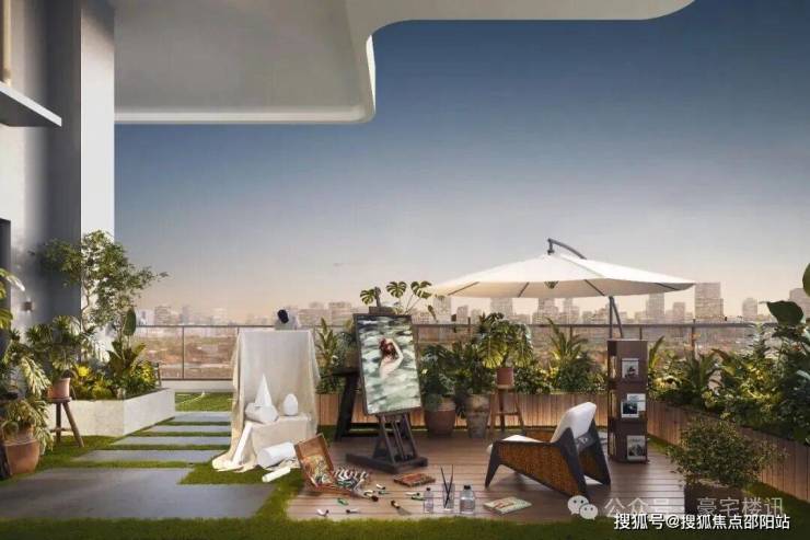 它是带有“垂直绿化”和“超大空中庭院”的特点,通常阳台率可达30%,这意味着使用率可超过100%,而淼汇·天萃使用率高达120%,远超旧产品使用率。