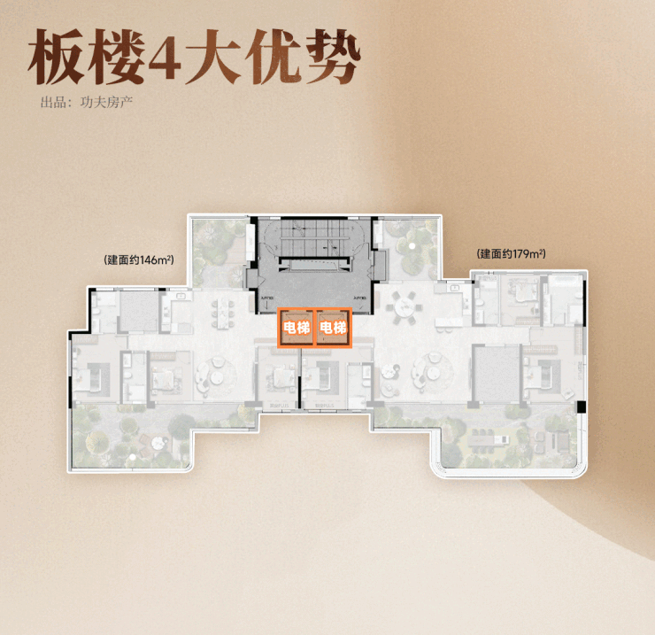 据了解,项目将首推10座146-179㎡大平层,一层两户,层高约3.1米,使用率高达约120%,这本身就是对居住品质的礼赞。
