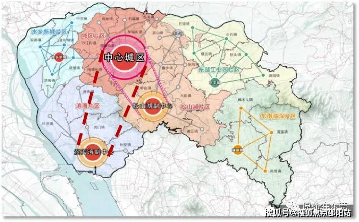 2023年,东莞将形成“一主两副六片区”格局。中心城区是唯一的主中心,滨海湾、松山湖将成为城市副中心。