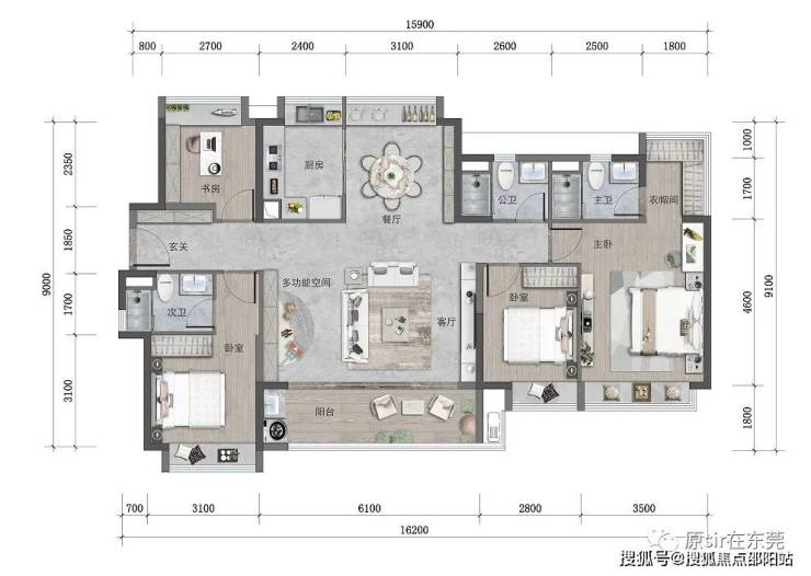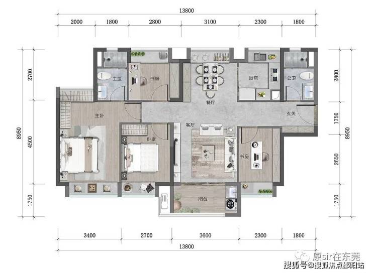 双卧室套房格局,提升家庭的生活质感,父母房间也能拥有独立明卫