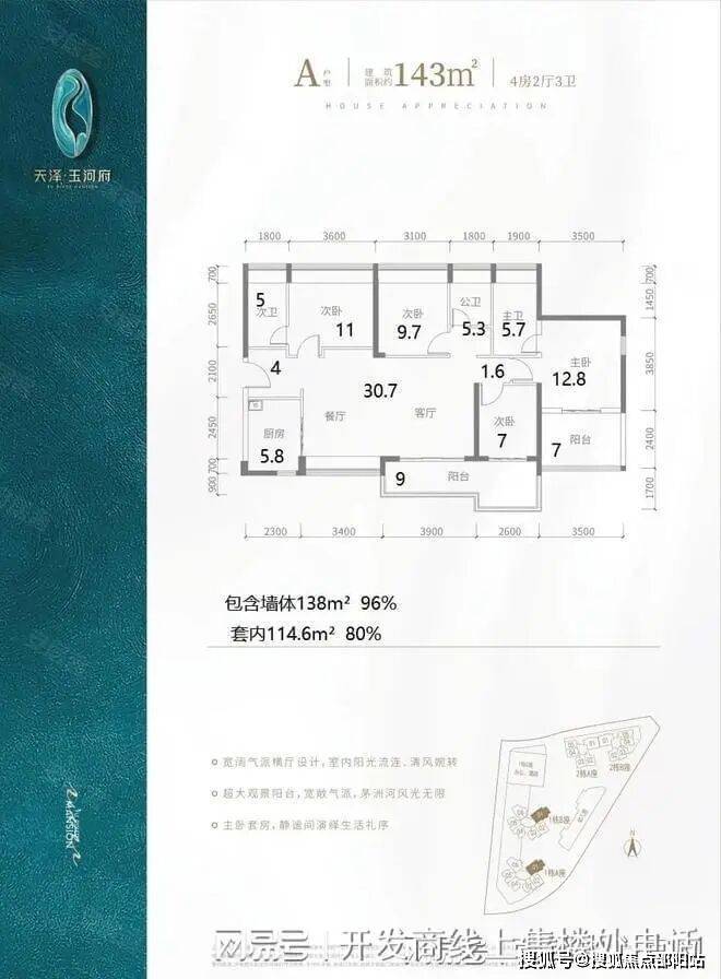 【项目基础信息】开发商:深圳市玉普霖房地产开发有限公司总建面:约132935.12㎡总套数:可售577套推售户型:建面约80-143㎡2-4房河岸美宅梯户比:2T5/3T6交付标准:带装修交楼时间:2025年10月30日车位数:905个导航地址:天泽玉河府营销中心