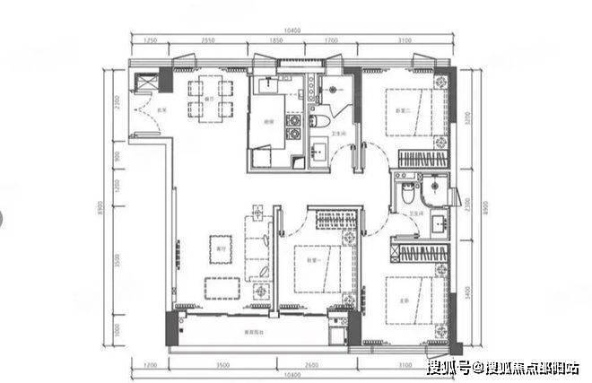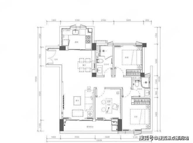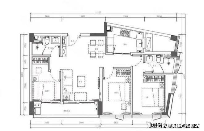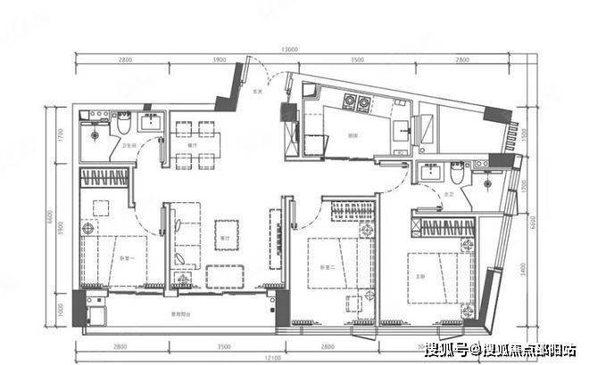 A1户型,建面78㎡(整体朝东,卧室朝南,大阳台)