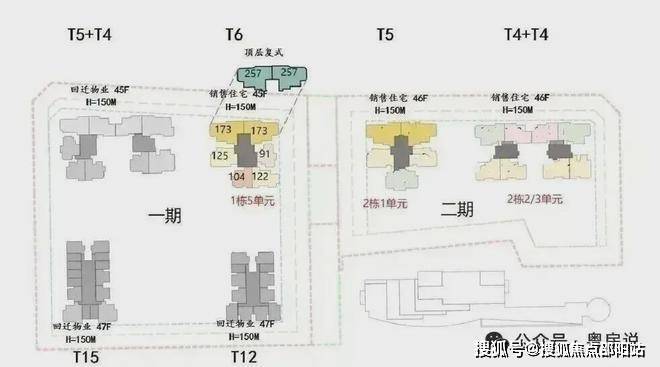 首推一期1栋5单元(45层),91-173㎡3-4房,共232套,以122-175平米4房为主,占比83%,还有两套257平顶复产品。173/257平大户型双电梯独立电梯厅入户,南区91-125平户型3梯4户。