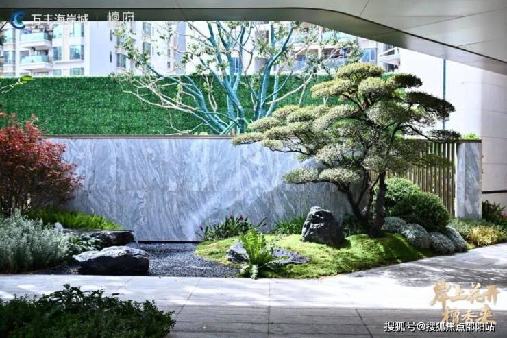 小叶紫檀与景墙水景共筑自然仪仗