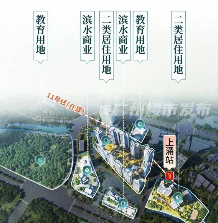 项目为地铁11号线上涌站上盖物业,4站直达珠江新城,5站至琶洲总部区,得益于该线路作为广州首条地铁环线的规划,可快速换乘至天河、越秀等核心区。