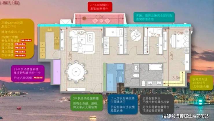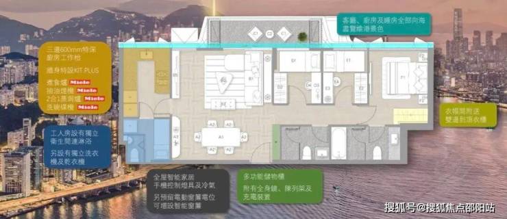 住宅分为Victoria Zone、Signature Zone两个区域。Victoria Zone为27楼以上的单位,大部分拥有维港烟花海景景观。
