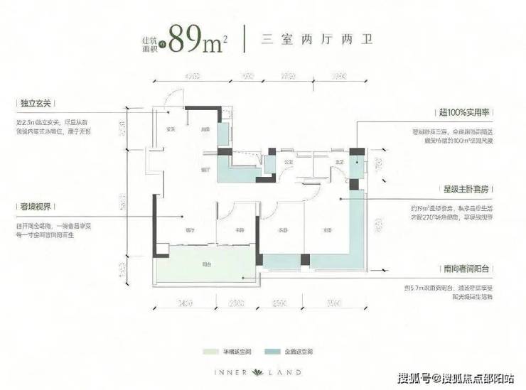 约89㎡:3房2卫,竖厅+主卧套房,动线清晰,收纳体系完善,适合年轻家庭/科学城人才;