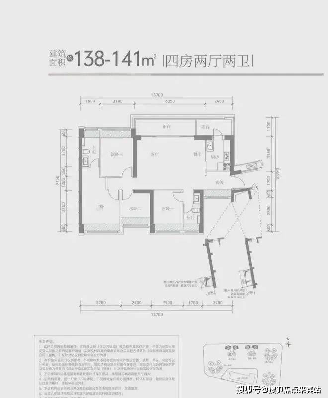 110㎡的4房2厅2卫,设计的是经典竖厅格局,客厅3.8米开间,进门独立玄关,LDKB一体化设计,S墙设计预留冰箱卡槽位,4个卧室分别做到了3.8米/3.2米/2.55米/2.44米的宽度,U型厨房,公卫三段式分离设计,得房率约:95%(包含赠送),客厅连接次卧出6.2米的大阳台,朝西南向。