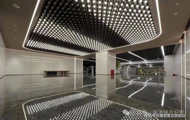 大堂——社区采用集中提升大堂,高16.5m,宽27m,星空顶,一楼大堂还没做好。三楼各单元门的入户大堂已经基本成型,这个归家的仪式感还是拉很满的。