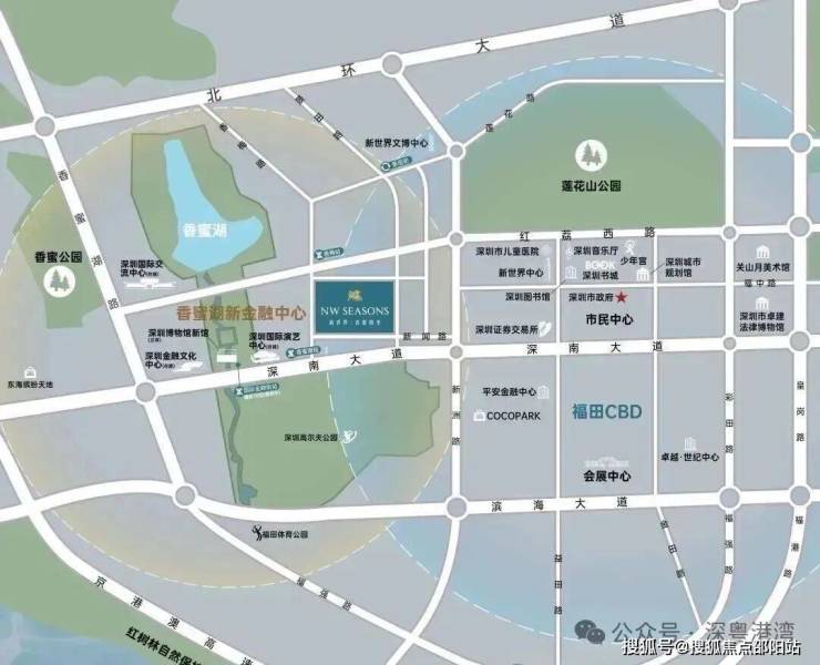 项目南侧是深圳高尔夫俱乐部,周边还有莲花山公园、市民中心、香蜜湖等,生态景观优美。周边有会展中心、深圳市民中心、深圳博物馆、深圳书城、深圳图书馆、少年宫音乐厅、当代艺术中心等优质文体配套。