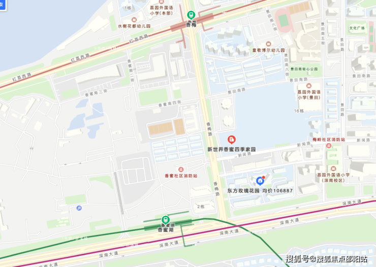 新世界香蜜四季家园位于福田区莲花街道,距离1号线香蜜湖站约500米。距离市民中心约1.4公里,南侧是深圳高尔夫俱乐部,地理位置非常优越。西临香梅路,东侧是合正名园。总占地面积约4.64万㎡,规划总建筑面积约54.35万㎡,分为两个地块开发,03-02-05地块规划为公寓产品的新世界香蜜国际公寓,03-02-06地块则是新世界香蜜四季家园。