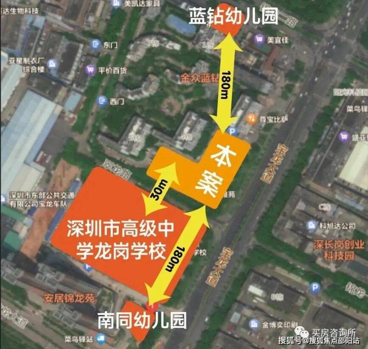项目旁就是九年制深圳市高级中学龙岗学校。(以当年教育局划分为准)