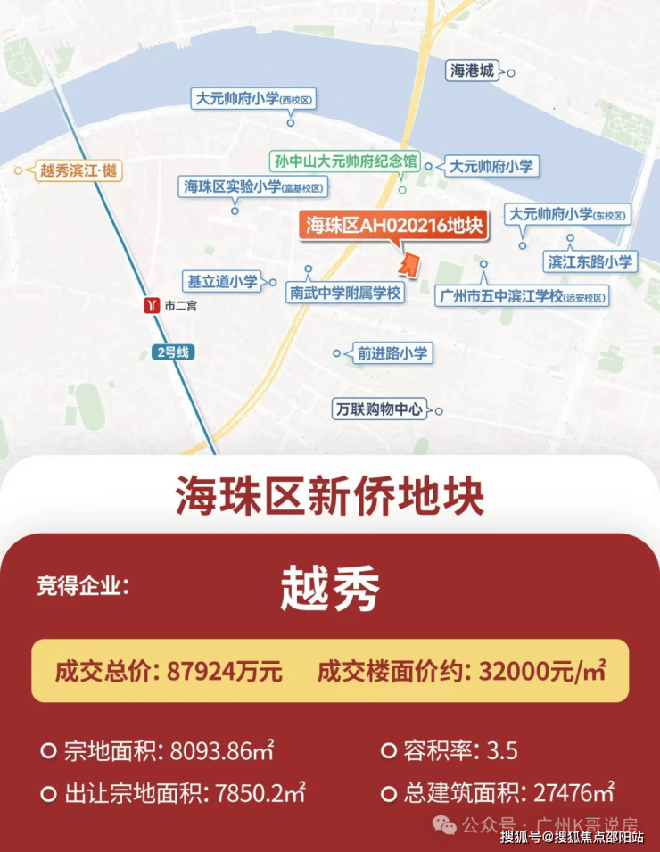 2025年1月底,越秀地产以总价8.79亿、折合3.2万/平的地价拿下地块,拿下2025年广州土拍第一拍。
