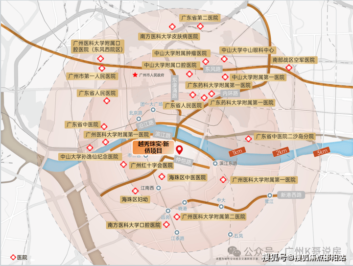 周边医疗:广医一院、二院,珠江医院,海珠区妇幼,广州市十字会医院等号称“五分钟生命线”的老城医疗保障。同时3km范围可速达海珠、越秀多个重点医疗配套。
