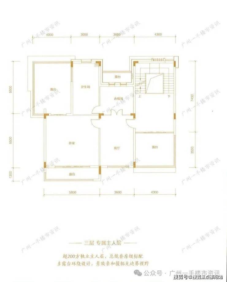 别墅三层则是专属的主人空间,三层整层使用面积超200㎡,整层仅做了一个主人套房,还拥有4个超大露台可一览小区园林湖景。