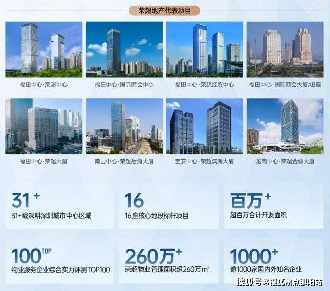 🏙【品质保障 鹭湖唯一专业写字楼开发商】• 荣超集团——创立于1993年,31年开发运营经验,专注于核心区高端写字楼开发运营,是最早进入福田CBD的专业写字楼开发商• 荣超物业——国家一级物业管理资质,写字楼物业管理标杆企业,管理面积超260万㎡,荣获“物业服务企业综合实力测评TOP100”、“深圳物业服务企业综合实力百强”
