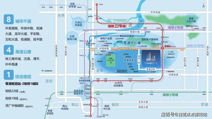 🏙【枢纽中心 立体交通加速商务通勤效率】• 鹭湖枢纽距离本案400m• 与深圳北站形成一南一北双枢纽• 2地铁1城际1电车交汇