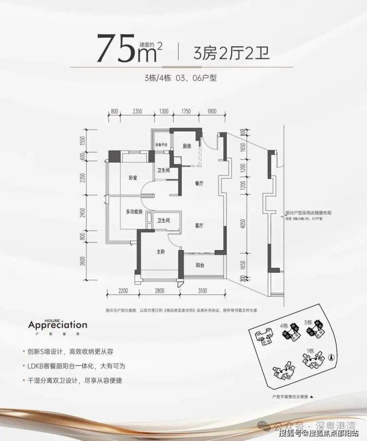 一共8条腿,选择比较丰富。70-80平户型在市面上有楼盘在售,但基本为3房1卫或2房1卫,溪山禾玺基于新规设计优势,75平直接升级为3房2卫,具备功能全的同时还压低了总价。