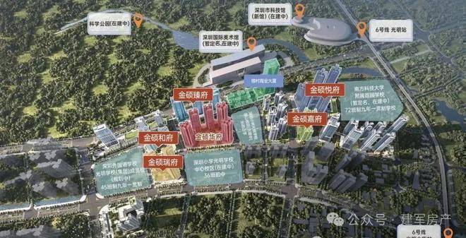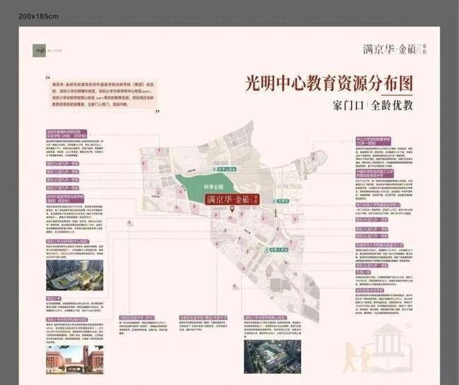 满京华金硕,由满京华集团开发,位于光明区光明中心区光辉大道与狮山三街交汇处,项目所在区域是光明规划最宜居,居住小区板块最大的片区,北侧靠近科学公园,东侧及南侧是深圳小学光明学校狮山校区及初中校区。