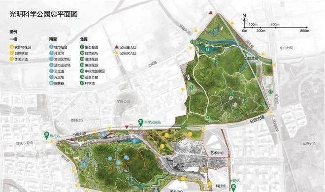 科学公园占地面积约208万平方米,大小相当于两个深圳湾公园。北接公常路,南临光辉大道,西至楼环路,东临光明大道、光侨路。