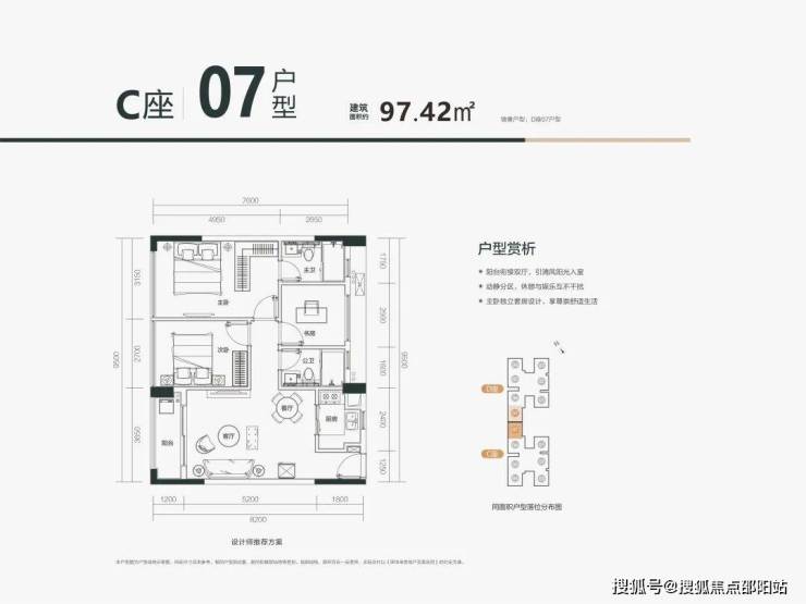 🏡C07户型:约97㎡改善级舒适大三房户型
