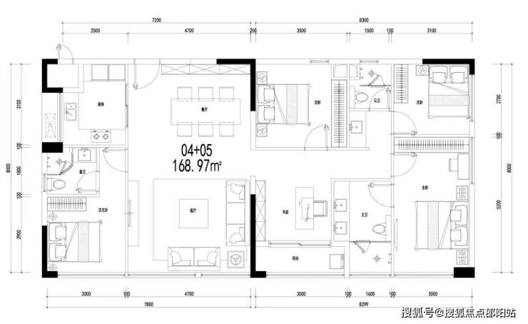 🏡C04+05户型:约169㎡阔绰舒居4房,高处视野私享无遮景致