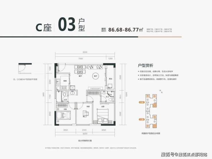 🏡C03户型:约86㎡全能大三房,南北通透 + 全明格局