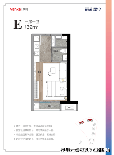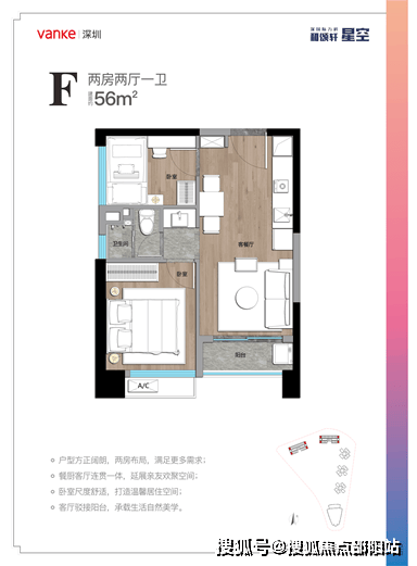 公寓部分(推广名为V寓)的主力户型则建筑面积约为39至56㎡,主要为一至二居室。