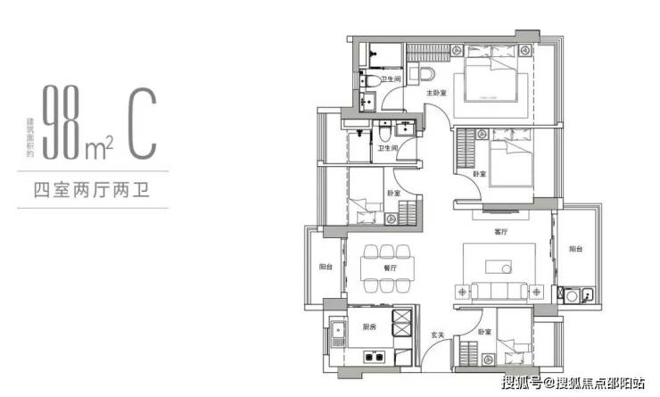 项目在产品力上同样“能打”。项目打造“新规设计”,户型上空间使用效率高。例如,建面约76㎡可做实用三房,客厅开间达3.3米;约98㎡户型可做到四开间朝南,甚至南北通透的双阳台设计;而约180㎡的“楼王”户型则拥有约5.5米阔绰客厅开间与约18.6米的南向巨幕面宽。