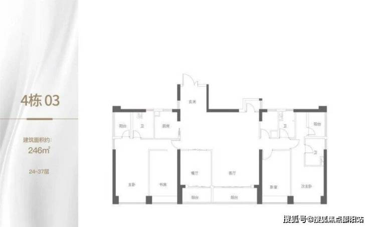 项目规划4栋住宅共261套,今年首开1栋高层住宅,197-237㎡四房大平层。
