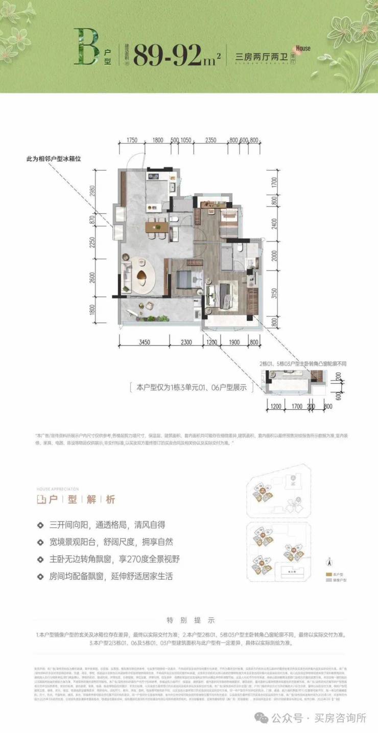 2.资料中所载房屋面积均为建筑面积,最终面积可能存在差异。