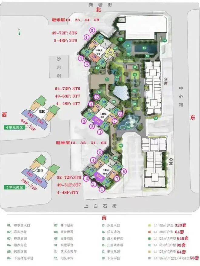梯户比:1-3/1-4栋低区4T7,高区3T6;1-5栋高低都是3T6(PS:48F以上为高区)