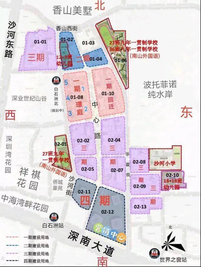 白石洲1公里范围内,聚集了5所初中,7所小学。项目所处片区已纳入南山外国语集团教学,现在周边有沙河小学,南山第二实验学校,且项目自身带4所幼儿园共57班,3所九年一贯制学校共90班,学校都会在一期建成时共同交付。