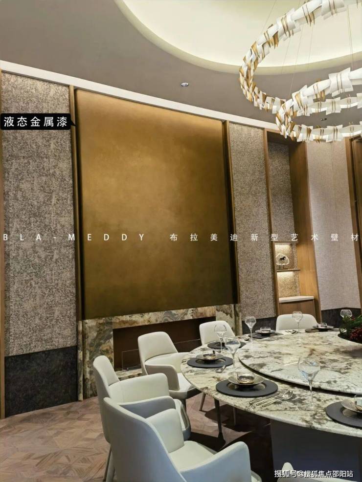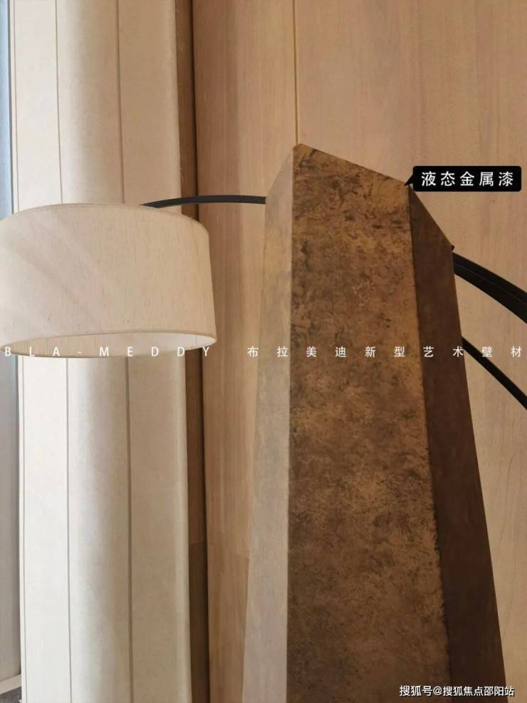 布拉美迪液态金属漆壁材作为高定装饰材料的一种,“液态金属漆”是一种用于室内、外墙的金属涂层,是一项材料形态的技术产品,可将液化的半贵金属粉(如锌、铜、青铜等)应用于任何基底层上,为建筑、室内、工业设计师提供新的灵感。