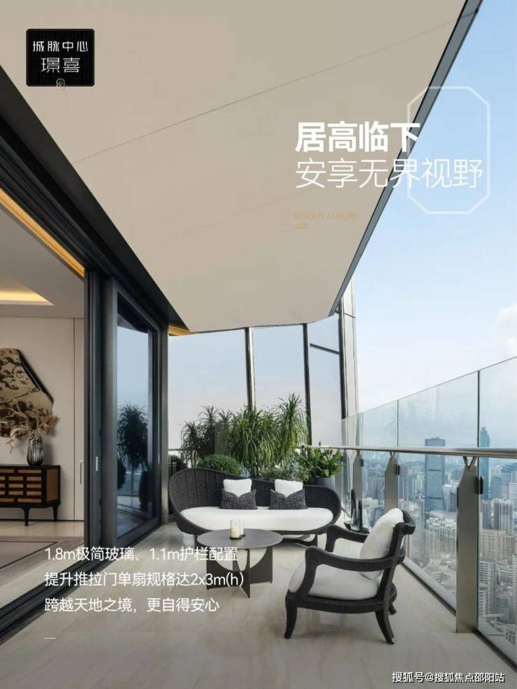 宛如“游艇甲板式”奢华露台,尽在【璟喜】得以私享。近40㎡云端观景台,最大3.3米阔绰进深,最长13米,全开放式设计,居高临下,180°瞰尽自然与城市多重立体景观。