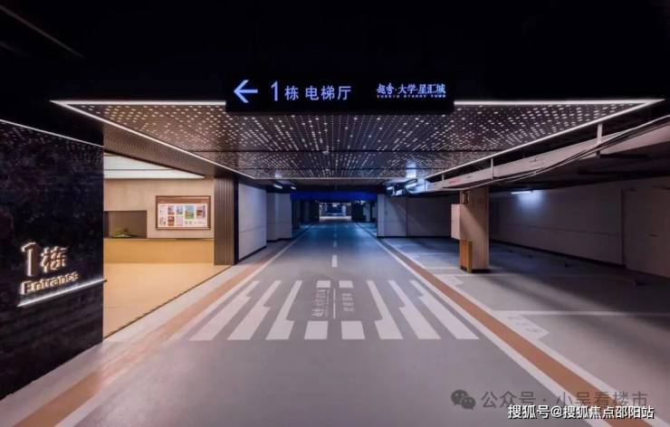 车库竟然做了千万级豪宅才有的星空顶和灯模,星空顶车库又连接着每栋负一楼的车马厅,这都是越秀给业主的升级,车库减速带做了金属地钉,不会像传统减速带容易刮底盘、车库采用橘皮环氧地坪工艺,减震降噪、车库的灯都是感应灯等等,看得出越秀是在用心做交付。