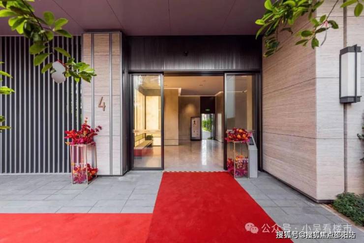 大家都说大门是一个项目的门面,而大学星汇城的大门景墙铺了石材,金属包边勾勒,背景墙做了金属格栅,保持了园林私密性,特别的是,其实原本设计方案计划是放置冬青树,但最后交付了豪宅标配价值六位数的罗汉松,据说这是越秀特地给业主升级。