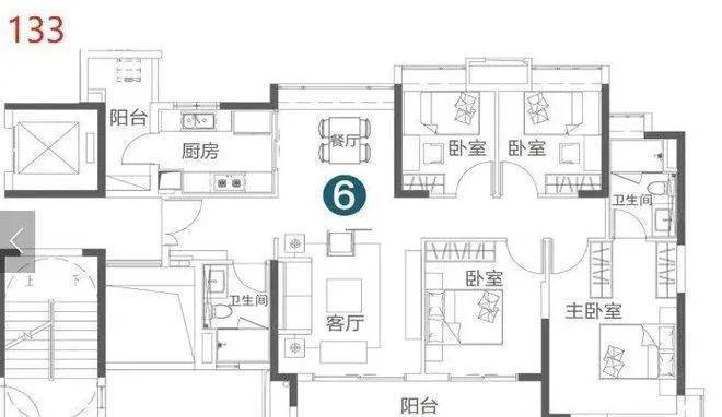 133四房户型是刚需改善户型,整体设计方正实用。南北对流双阳台,卧室还有观景飘窗,虽然山海景观一般,但空间舒适度不错。