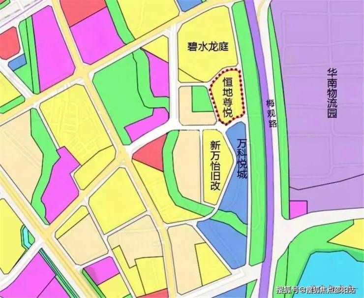 项目的南侧是碧水龙庭,北面是万科悦城一期,和新万怡项目 北地块相邻。