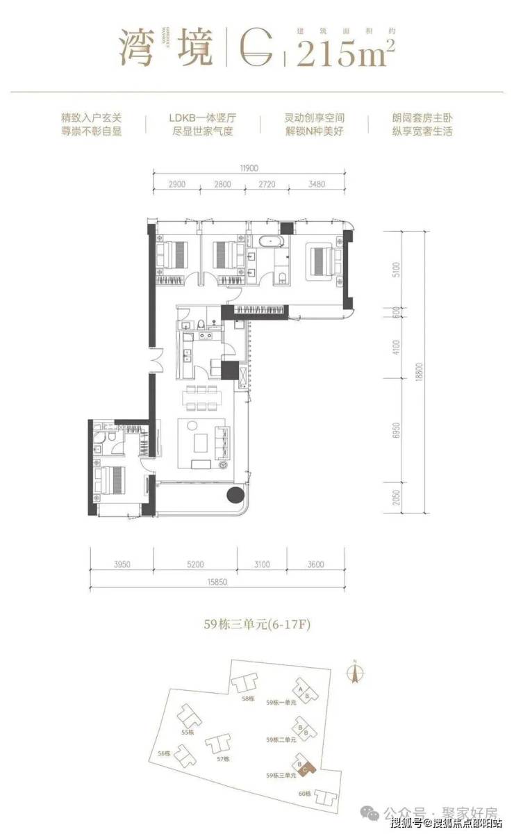 1️⃣58栋77套:89㎡3房,190㎡4房(5月推售)