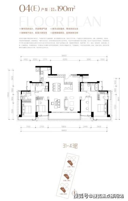 约190㎡户型南北通透,户户带270°采光阳台。双套房+独立入户玄关设计搭配宽景大阳台及高使用率,居住舒适度拉满。