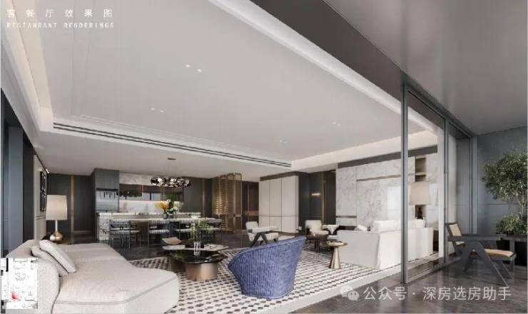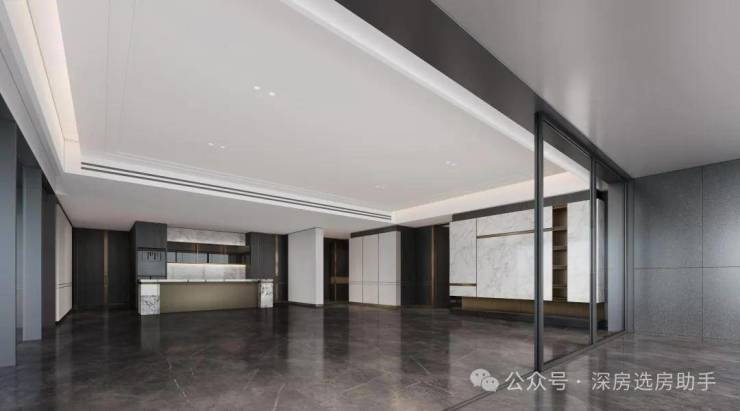 客厅开间近9米,进深近10米,3.6米层高,净高约2.7-3.1米(部分吊顶不同,高度有所区别)空间尺度十足,奢享品质人生