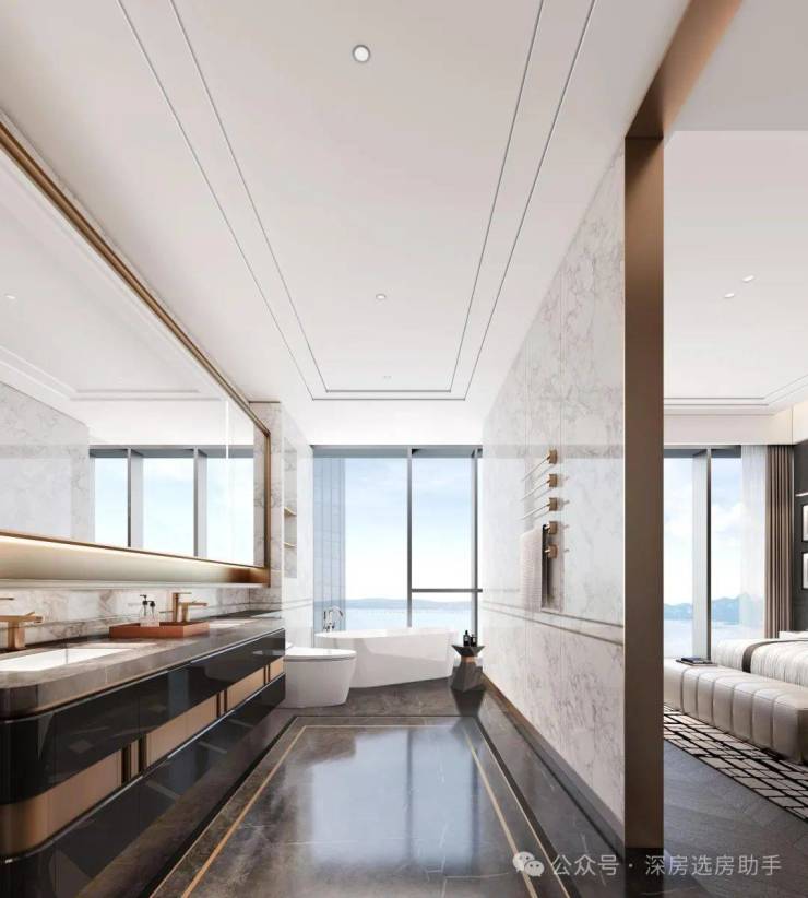 主卧、主卫均为东南向,享优质海景,约4.2米开间主卧,大尺度独立衣帽间及主卫,舒适感十足