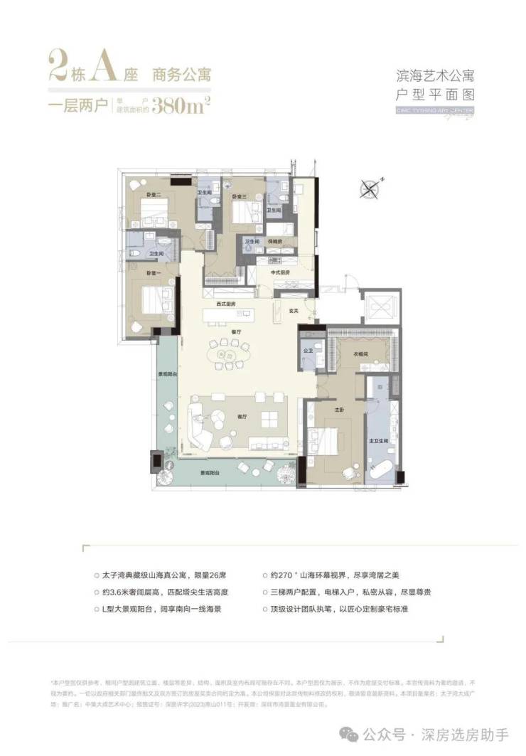 约380㎡大平层,4套房阔绰空间,专梯入户,私密性极强