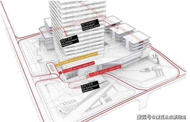 智能化停车系统,办公、居住实现动线分区、错峰停车,独立流线,四面临路、四面开口,居住专属车行入口。